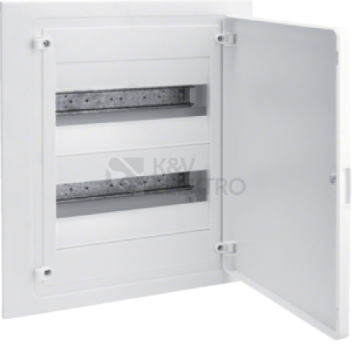 Rozměr niky: 382 x 318 x 72 mm Dveře umožňují pravou nebo levou montáž. Změna směru otevírání bez nutnosti demontáže krytu. Možnost doplnit zámkem s klíčky. Dveře se otvírají o 180°. Technická data: Třída izolace II Barva bílá (RAL 9010) Jmenovitý proud: pro přístroje do 63A Jmenovité napětí: AC 400 V / 50Hz Testováno žhavou smyčkou 850°C Mosazná svorkovnice PE + N Zaslepovací krytky Úchytné body pro fixaci vodičů jsou součástí skříně Nový patentovaný popisový systém Dveře jsou opatřeny ochrannou fólií Baleno v kartonu IP30 při otevřených dveřích IP40 při zavřených dveřích IK07