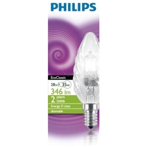Kvalitní halogenová žárovka s paticí E14 vyzařuje příjemné světlo a potěší skvělým poměrem cena/výkon. Klasika v oblasti světelných zdrojů Žárovky Philips EcoClassic Twisted Candle nabízejí dekorativní tvar, na jaký jste zvyklí, a zároveň lepší energetickou účinnost. Tyto žárovky poskytují vysoce kvalitní světlo, jsou stmívatelné a mají okamžitý náběh. Halogenovou žárovkou s paticí E14 můžete osadit tato svítidla. Podívejte se také na další typy zdrojů s paticí E27, jako jsou LED žárovky nebo úsporné žárovky a na kompletní sortiment halogenových žárovek.