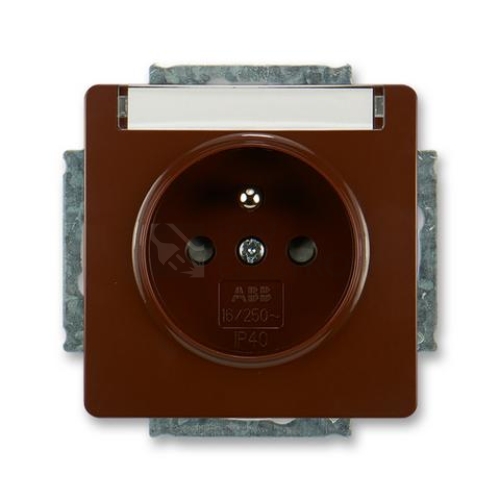 Zásuvka jednonásobná s ochr. kolíkem, s clonkami, s popis. polem, hnědá