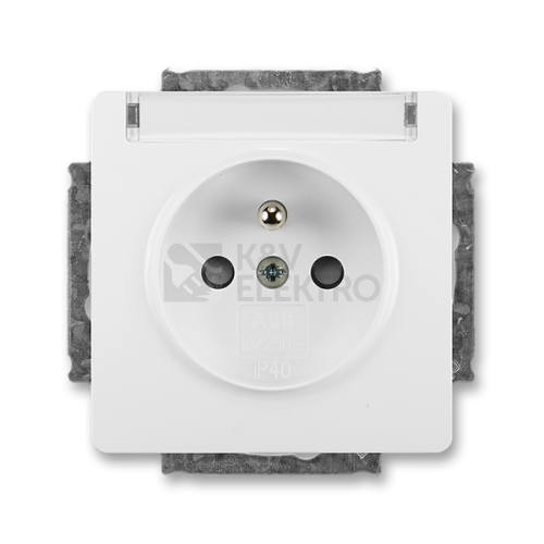 Zásuvka jednonásobná s ochr. kolíkem, s clonkami, s popis. polem, jasně bílá