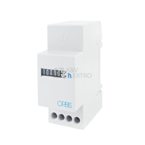 Počítadlo provozních hodin ORBIS CONTA MODULAR - napětí 230V (50Hz), 2modulové, velikost číslic 4,4mm, kapacita hodin 99999, montáž na DIN lištu, krytí IP20, barva šedá