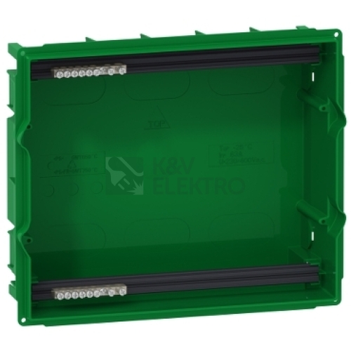 Mini Pragma vana rozvodnice, 1x8mod., pro zapuštěnou montáž. řada výrobků: Mini Pragma - typ produktu nebo součásti: základna - příslušenství / náhradní díly: příslušenství pro rozvodnici - [In] jmenovitý proud: 63 A - počet svorkovnic: 1 nulová svorkovnice s 16 šroub vývody, 1 zemní svorkovnice s 16 šroub vývody - funkce svorkovnice: zemní / N.