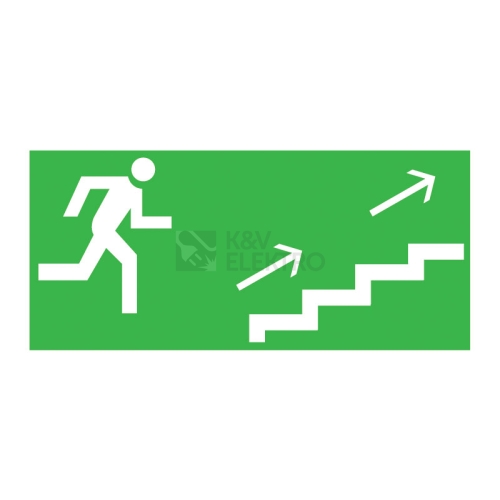 Pro typ s plexisklem (PL) - rozměr 150x300mm - únikové značení (panáček, po schodech vpravo nahoru) - 30 m distanční vzdálenost