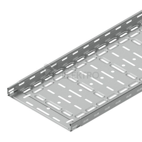 Kabelový žlab s integrovanou spojkou KZI 35x300 z plechu tloušťky 0,75 mm v povrchové úpravě sendzimir, děrovaný, opatřený embosy pro zvýšení pevnosti a tuhosti.