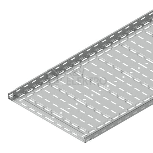 Kabelový žlab s integrovanou spojkou KZI 35x500 z plechu tloušťky 1,00 mm v povrchové úpravě sendzimir, děrovaný, opatřený embosy pro zvýšení pevnosti a tuhosti.