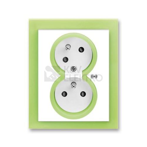 Zásuvka 2násobná s natoč. dutinou, s přep. ochr., s akustickou sig., bílá/ledová zelená