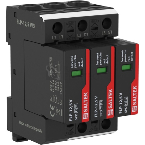 Třípólový varistorový svodič bleskových proudů určený k instalaci do rozvodů nn pro budovy třídy rizika III a IV podle ČSN EN 62305, na rozhraní zón LPZ 0–LPZ 1 a vyšších. Slouží k ochraně proti účinkům částečných bleskových proudů, indukovaného přepětí při úderu blesku a proti spínacímu přepětí.