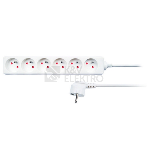 počet zásuvek: 6 průřez vodičů: 3 x 1mm2 typ kabelu: H05VV-F3 lomená vidlice barva: bílá délka: 3m 230V/10A
