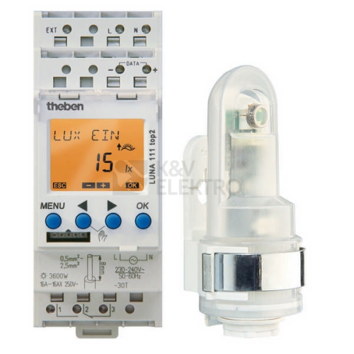 • Jednokanálový soumrakový spínač a řídicí jednotka osvětlení s digitálním nastavováním, určená pro montáž do rozváděče • Pro jasově závislé řízení osvětlení v exteriéru i v interiéru, řízení osvětlovacích systémů a zastiňování • Externí digitální světelnéčidlo je součástí dodávky (nástěnné nebo vestavné světelné čidlo) • Spínaná světelná citlivost je nastavitelná digitálně v rozsahu 1–99 000 lx (předprogramovaná hodnota je 15lx) • Světelnou citlivost pro zapnutí a vypnutí lze nastavit odděleně • Čas zpoždění (předvolba1 min) lze digitálně nastavit v rozsahu 0–59 min (pro zamezení nežádoucímu spínání světlem blesku, automobilových reflektorů apod.) • Čas zpoždění pro zapnutí a vypnutí lze nastavit odděleně • Indikace stavu sepnutí kanálu a nezpožděná indikace zapnutého stavu je zobrazena na displeji • Zobrazení aktuálně změřené hodnoty v luxech na displeji • Bezšroubové svorky DuoFix, vždy pro dva vodiče na jednu svorku • Osvětlení displeje (vypínatelné) • Rozhraní pro zásuvnou paměťovou kartu OBELISK top2 umožňuje použití 2. programu (hodnoty v luxech) a kopírování, resp. zálohování programů a/nebo nastavení •Integrovaný čítač provozních hodin • Interval údržby je možno konfigurovat např. pro pravidelnou výměnu svítidel po uplynutí nastavené provozní doby • Rozšířený rozsah teplot –30 °C ... +55 °C (LUNA) a –40 °C … +70 °C (světelné čidlo) •Lithiová baterie poskytuje desetiletou rezervu chodu • Spínání při průchodu nulou šetří kontakty relé a umožňuje vysoké světelné zatížení • Předvolba spínání • Funkce trvale ZAPNUTO nebo trvale VYPNUTO • PIN kód • Externíspínané napětí pro vypínač nebo tlačítkový spínač s mnoha konfigurovatelnými funkcemi: trvalé ZAPNUTÍ, trvalé VYPNUTÍ, předvolba spínání, časovač ZAPNUTÍ a VYPNUTÍ a schodišťový spínač