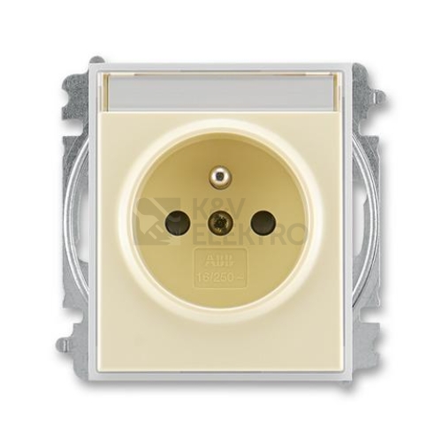 Zásuvka jednonásobná, chráněná, s clon., s bezšr. sv., s popis. polem, slonová kost/led. bílá