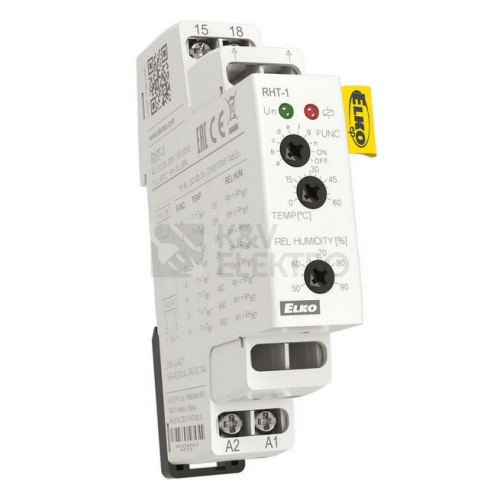 Hygro-termostat pro hlídání teploty a relativní vlhkosti v rozvaděčích. POPIS Teplotní rozsah od 0…60°C a relativní vlhkost v rozsahu od 50…90%. Možnost nastavení až 8 podmínek pro sepnutí kontaktu a funkce trvale zapnuto/vypnuto. Senzor je součástí přístroje. Funkce kontroly senzoru (poškození, zarušení, …). Pevně nastavená hystereze teploty na 2.5°C a vlhkosti na 4%. TECHNICKÉ PARAMETRY Napájecí napětí AC/DC 24 – 240 V. Výstupní kontakt: 1x spínací (AgSnO2). V provedení 1-MODUL, upevnění na DIN lištu.