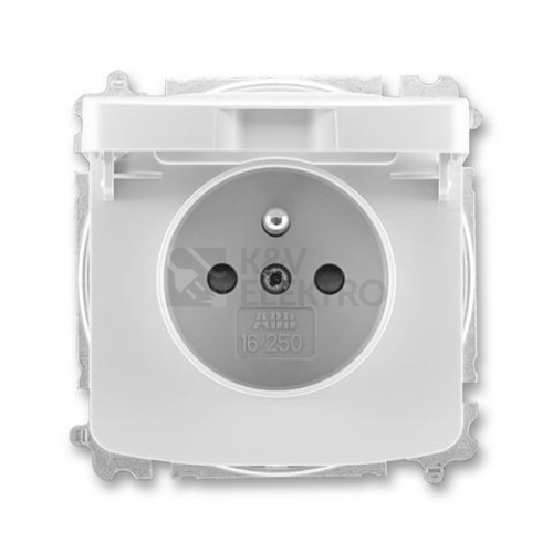 Zásuvka jednonásobná, chráněná, s clonkami, s víčkem, s bezšroub. sv., šedá