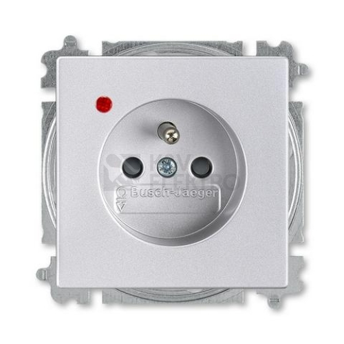 Zásuvka jednonásobná s ochr. kolíkem, s ochranou před přepětím, hliníková stříbrná
