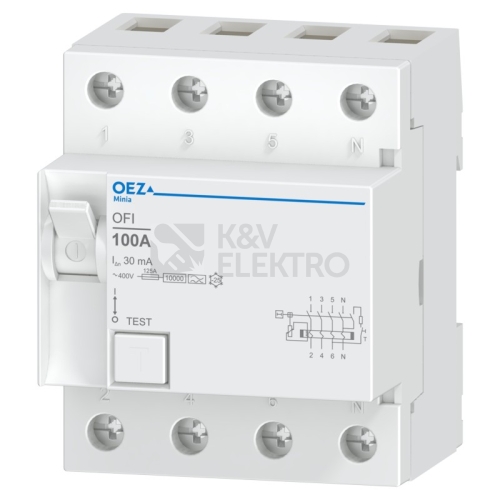 In 100 A, Ue AC 230/400 V, Idn 30 mA, 4pól, Inc 10 kA, typ A