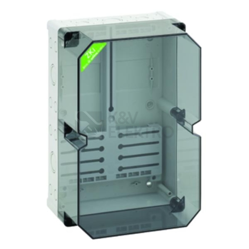 Skříň elektroměru-průmyslová kvalita -, s transparentním víkem, sériově plombovatelné, s namontovaným elektroměrovým křížem a připevňovacími šrouby elektroměru, s hrdlem s dvojitou membránou, Zaslepovací zátka a izolační krytka, pro třífázové elektroměry, Rozměry: 250 x 370 x 193mm