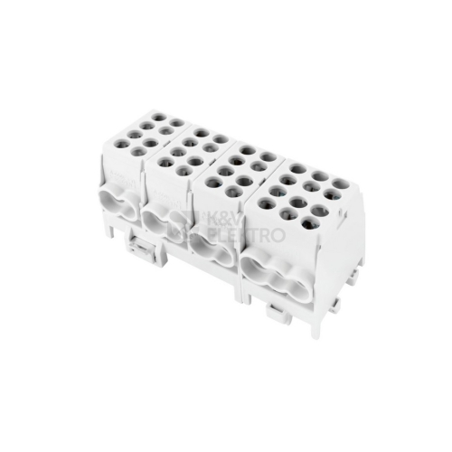 4-pólová svorkovnice rozbočovací/smyčkovací krytá - univerzální Al/Cu 100A/400V Vstup: 8x 2,5-25mm2 Výstup: 10x 2,5-16mm2 šedá pro Al i Cu vodiče