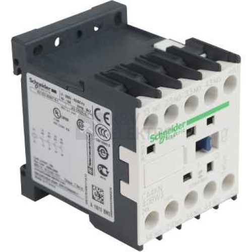 TeSys K stykač CA-K, 4 kontakty (4Z), 10A/690V, pro ovl. elektromagnetické zátěže AC-15/DC-13. Poskytuje nízkovýkonový ovládací obvod 24 V DC bez přítahu a je vybaven zařízením pro potlačení přepětí, připojením šroubovými svorkami. Pro vysoké provozní rychlosti do 180 cyklů/min a okolní teploty -25/+50 °C zajišťuje vysokou spolehlivost a trvanlivost. Kompaktní (šířka 45 mm), pro nacvaknutí na 35 mm lištu DIN nebo upevnění šroubem. Certifikováno více standardů (IEC, UL, CSA, CCC, EAC), produkt Green Premium (RoHS/REACh).