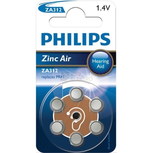 Baterie do naslouchadel Philips ZA312 s novou technologií Zinc Air pořídíte v balení po 6 kusech. Zajistěte si energii do naslouchadel díky PR41 bateriím Zinc Air s velmi dlouhým výkonem! Tento výrobek se prodává v blistru, který obsahuje 6 ks. Uvedená cena je za 1 ks baterie. Baterie do naslouchadel Philips ZA312 (označení PR41) v provedení zinek/vzduch má napětí 1,4 V. Kapacita činí 160 mAh a průměr baterie 20,4 mm. Podívejte se na kompletní výběr baterií do naslouchadel a dalších knoflíkových baterií na našem e-shopu. Doplňte si také zásoby jiných druhů baterií – vybírejte z AA baterií, AAA baterií, baterií 9V, baterií C (takzvaných malých buřtů) či baterií D (velkých buřtů). O firmě Philips Světoznámá společnost Philips & Co. byla založena v roce 1891 v nizozemském Eindhovenu s cílem uspokojit rostoucí poptávku po žárovkách, která nastala v důsledku komercionalizace elektřiny. V současnosti nabízí Philips široké spektrum vysoce kvalitních produktů z oblasti elektroniky a elektrotechniky. V našem sortimentu naleznete například LED žárovky Philips, halogenové žárovky, svítilny, zářivky, ale i stropní a nástěnná svítidla, podhledová svítidla nebo baterie Philips. Prohlédněte si náš kompletní sortiment od firmy Philips.