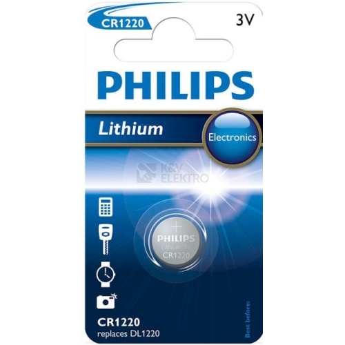 Kupte si vysoce kvalitní lithiovou knoflíkovou baterii CR1220 oblíbené značky Philips. Díky kvalitnímu provedení tyto baterie vynikají dlouhou životností v často používaných elektronických zařízeních, hodí se například do některých druhů hodinek nebo kalkulaček. Lithiové knoflíkové baterie CR1220 Philips mají kapacitu 38 mAh a napětí 3 V. Typ CR1220 má průměr 12 mm. Podívejte se na kompletní výběr knoflíkových baterií na našem e-shopu. Vybírat můžete z mnoha typů: nejpoužívanějšími jsou CR2032, CR2025 či například CR2016. Doplňte si také zásoby dalších baterií – vybírejte z tužkových baterií, AAA baterií, baterií 9V, baterií C (takzvaných malých buřtů) či baterií D (velkých buřtů). O firmě Philips Světoznámá společnost Philips & Co. byla založena v roce 1891 v nizozemském Eindhovenu s cílem uspokojit rostoucí poptávku po žárovkách, která nastala v důsledku komercionalizace elektřiny. V současnosti nabízí Philips široké spektrum vysoce kvalitních produktů z oblasti elektroniky a elektrotechniky. V našem sortimentu naleznete například LED žárovky Philips, halogenové žárovky, svítilny, zářivky, ale i stropní a nástěnná svítidla, podhledová svítidla nebo baterie Philips. Prohlédněte si náš kompletní sortiment od firmy Philips.