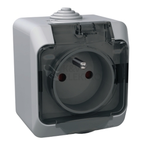 Cedar Plus, jednoduchá zásuvka 230V 16A 2p+PE, krytky, čirý kryt, šedá. řada výrobků: Cedar Plus - dodatečné informace o konektoru: průhledné víko a clonka - barva krycí desky: šedá.