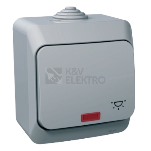 Cedar Plus, ovládač tlačítkový-16A-orientační kontrolka-symbol světlo-šedá. řada výrobků: Cedar Plus - signálka: signálka - barva krycí desky: šedá.