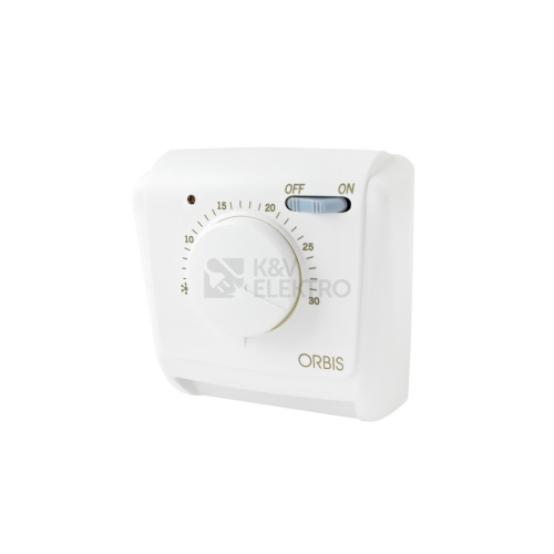 Termostat ORBIS CLIMA MLI, pokojový, mechanický, maximální zatížení kontaktů 10A (1,5A) 250V AC, montáž na povrch / do přístrojové krabičky, krytí IP20. Termostat CLIMA MLI má manuální přepínač s funkcí zapnutí nebo vypnutí termostatu.