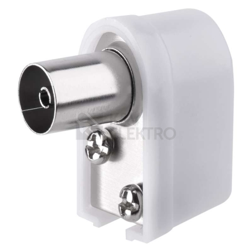 IEC konektor úhlová zásuvka je určen k napojení na koaxiální kabel a má bílou barvu.