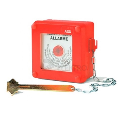 Nouzové požární tlačítko s kladívkem ABB Luca13180 na povrch IP55 Technické parametry: krytí IP 55 RAL 3000 červená S prosvětleným tlačítkem (12/24V žárovky a 220V doutnavky), s přepínacím kontaktem 1/1 (2A, 250V) a doplněné kladívkem na rozbití skla