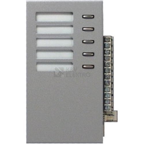 Tlačítkový modul TT85 - 5 tlačítek Zabezpečují vyzvonění domácího telefonu (zvonku) a následnou komunikaci příchozího s obyvatelem/domácím telefonem. Varianta s konektorem je určená pro výstavbu zvonkového/tlačítkového tabla, kdy modul není koncovým modulem před zámkovou lištou, ale jsou za ním tlačítkové další moduly a konektor slouží k připojení těchto modulů.