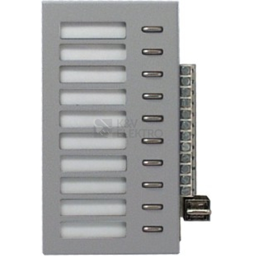Tlačítkový modul TT85 - 10 tlačítek Zabezpečují vyzvonění domácího telefonu (zvonku) a následnou komunikaci příchozího s obyvatelem/domácím telefonem. Varianta s tlačítkem podsvitu slouží jako samostatný nebo koncový modul, kde tlačítko podsvitu je zakryto zámkovou lištou a zabezpečuje podsvícení jmenovek všech modulů v table.