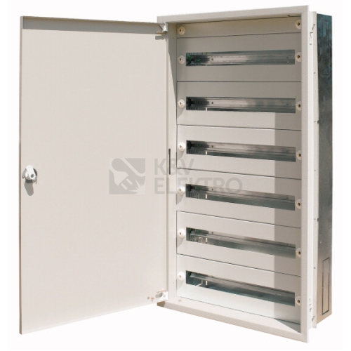 • Provedení pod omítku • Rozteč přístrojových lišt 150 mm • Šířka jedné řady 600 mm (24 modulů) nebo 800 mm (35 modulů) • Výřez v krycí desce 45 mm • Samozemnicí úchyty krycích desek • Možnost montáže výkonových jističů NZM1, NZM2, NZM3 pomocí montážních sad systému Profi Plus • Možnost vybavení zámkem s klíčem SS-KS-61005 (obj. č. 275422) • Snadná změna otvírání dveří (vlevo / vpravo) • Barva světle šedá RAL 7035 -rozměr:1200x600mm -počet lišt/modulů:7/168