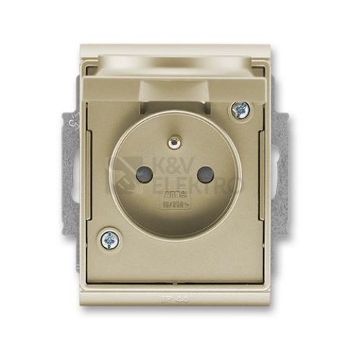 Zásuvka jednonásobná s ochr. kolíkem, s clonkami, víčkem, s drápky, IP44, šampaňská