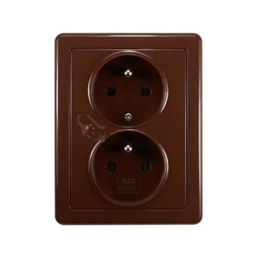 Zásuvka dvojnásobná, s ochranou před přepětím, hnědá