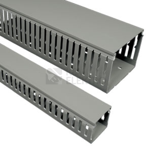 Rozváděčový kanál RK 40X40 LD, tmavě šedý, 2 m, karton. Optimální zavírání, lehká montáž a demontáž, pevně fixovaný kryt, snadné vylomení žebra u dna kanálu. Dodáván včetně víka.