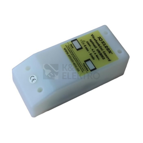 Schodišťový spínač/automat Elcon UKBN-2 Kompletní specifikace Na rozdíl od UKBN 1 při zablokování ovládacích tlačítek přístroj vypne již během 2 vteřin, což lze skvěle využít například při servisní činnosti na ovládaném osvětlení (elektrikář si podržením tlačítka může vypnout světlo při výměně žárovky. Dále obsahuje užitečné funkce vč. možnosti nastavení do módu Start-Stop spínače. Všechny tyto možnosti jsou detailně popsány v návodu k použití. UKBN 2 je výhodné instalovat zejména v případech, kdy zablokováním ovládacích tlačítek hrozí nebezpečí poškození zařízení trvalým chodem. Tento případ nastává například v systémech centrálního odvětrání v panelových domech nebo při časování osvětlení v průchozích prostorách. UKBN 2 slouží jako moderní náhrada zastaralých a nespolehlivých typů časových spínačů v bytové výstavbě, což je jeho hlavní aplikační určení. Svojí mnohaúčelovostí pokrývá široké pole použití a při správném použití výrazně snižuje náklady na údržbu zařízení. Časový spínač UKBN 2 má tři signalizační LED, které se využijí zejména při montáži a kontrole funkce. ZELENÁ LED indikuje sepnutí výstupního relé. Prostřední ČERVENÁ LED indikuje vypnutí časování. Krajní červená LED indikuje stav tlačítkového okruhu. Na desce plošného spoje je jedna propojka (jumper) pro nastavení. Základní nastavení - jumper vpravo (výstupní svorky dole) Rozšířené nastavení. Pomocí spínače odizolovaného od rozvodné sítě připojeného do svorek v pravém horním rohu desky nastavíme: Spínač rozepnut ZAP/ČAS/VYP (Časování s možností vypínání delším stiskem) nebo ZAP/VYP (bez časování) Vypnutí funkce vypínání dlouhým stiskem: na jumperu spojíme levé kolíky. Při současně navoleném nastavení b2) a c) nastane trvalé zapnutí. Toto nastavení je zakázáno! Technické údaje UKBN2: Napájecí napětí: 230 V~ Max. zatížitelnost kontaktů relé: 4 A Rozsah pracovních časů: 15 s - 10 min. Průřez připojovacích vodičů: max. 2,5 mm2 Vnitřní jištění: 6,3 A (ochrana kontaktů relé) V přístrojích jsou použity citlivé technologie CMOS, proto se po namontování nedotýkejte obvodů hrotem zkoušečky ani hroty měřících přístrojů.
