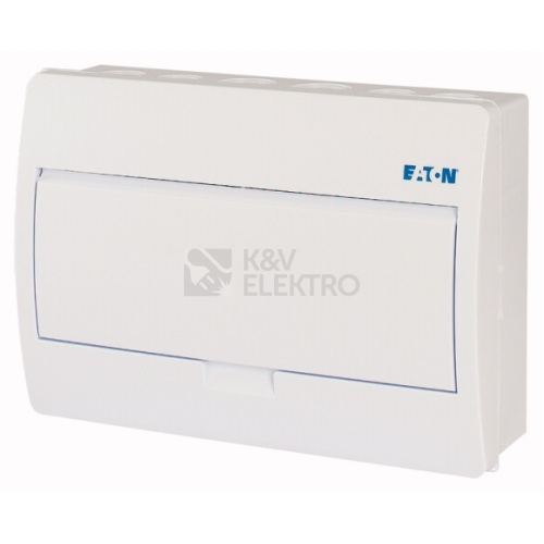 Domovní rozvodnice BC-O-1/12-TW-ECO na omítku s bílými plastovými dveřmi. PARAMETRY: krytí IP 40, 1 přístroj. lišta, 12 modulů, rozměry 210 x 300 x 100 mm. Dodávka obsahuje: • Rozvodnici • Dvířka • Přístrojovou lištu • Svorkovnice PE, N • Montážní návod