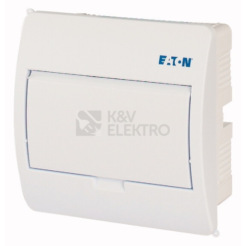 Domovní rozvodnice BC-U-1/8-TW-ECO pod omítku s bílými plastovými dveřmi. PARAMETRY: krytí IP 40, 1 přístroj. lišta, 8 modulů. Dodávka obsahuje: • Rozvodnici • Dvířka • Přístrojovou lištu • Svorkovnice PE, N • Montážní návod
