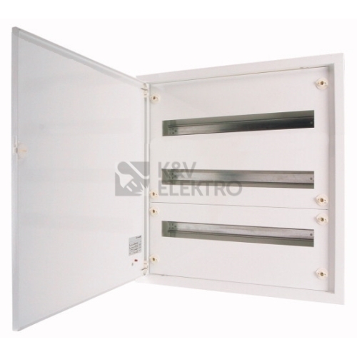 Bílá rozvodnice pod omítku BF-U-372-C od proslulé společnosti EATON je kvalitní velkoobsahová rozvodnice pro 72 modulů. Součástí dodávky je montážní rám s DIN lištami s přístrojovými lištami a N/PE svorkovnicemi. Specifikace bílé rozvodnice pod omítku EATON BF-U-372-C 283048 Rozvodnice pod omítku EATON BF-U-372-C s neprůhlednými dvířky nabízí 3 řady pro 24 modulů. K dispozici jsou předlisované otvory pro přívod kabelů na horní a spodní straně, které lze snadno vyrazit. Montážní hloubka rozvodnice činí 127 mm. Díky své barvě a nekomplikovanosti se snadno stane nerušivou součástí vašeho interiéru. Rozvodnici lže využít i při zřizování fotovoltaického systému. Prohlédněte si naši kompletní nabídku fotovoltaiky. Pořídit si u nás můžete i další modulové rozvodnice, případně pak další typy rozvodnic a rozvaděčů. Nabízíme elektroměrové rozvaděče, datové a telefonní rozvaděče, pojistkové rozvaděče a další. Rozměry rozvodnice pod omítku EATON BF-U-372-C jsou 620 mm x 588 mm x 136 mm. Technické detaily rozvodnice EATON BF-U-372-C Rozvodnice pod omítku EATON BF-U-372-C je vyrobena z práškově lakovaného ocelového plechu. Okolní teplota by se měla pohybovat v rozmezí -5 až +40 °C. Rozvodnice dosahuje stupně krytí IP30. Vždy se řiďte postupem od výrobce a montáž provádějte jen tehdy, jste-li k takovému úkonu oprávněni. V opačném případě přenechte instalaci na odborníkovi s příslušným certifikátem. Certifikáty výrobku Rozvodnice pod omítku EATON BF-U-372-C bílé dveře 72M 283048 splňuje příslušné normy ČSN. O společnosti Eaton Eaton Elektrotechnika s.r.o., úspěšný výrobce přístrojů pro elektroinstalace jak domovní, tak průmyslové. Společnost patří pod nadnárodní společnost Eaton corporation, jež je globálním lídrem v distribuci energie, ale také v produkci širokého sortimentu elektrotechnického vybavení. Společnost Eaton roku 2012 dokonce otevřela inovační centrum ve Vědeckotechnickém parku v Roztokách u Prahy. Jedná se o první takové centrum v Evropě a páté na celém světě. Pod Eaton corporation spadají značky jako Powerware, Holec, Santak, Cutler-Hammer, Moeller, CEAG či Crouse Hinds. Roku 2016 dosáhla společnost obratu v hodnotě 19,7 miliard dolarů a pracuje v ní přibližně 95 000 zaměstnanců. Její produkty jsou k dostání ve více než 175 států. Z výrobků značky Eaton si v naší nabídce můžete vybrat a zakoupit široký sortiment zboží, jako jsou například jističe, upevňovací prvky, modulové rozvodnice, ovládací prvky, výkonové stykače i ministykače a mnoho dalšího.