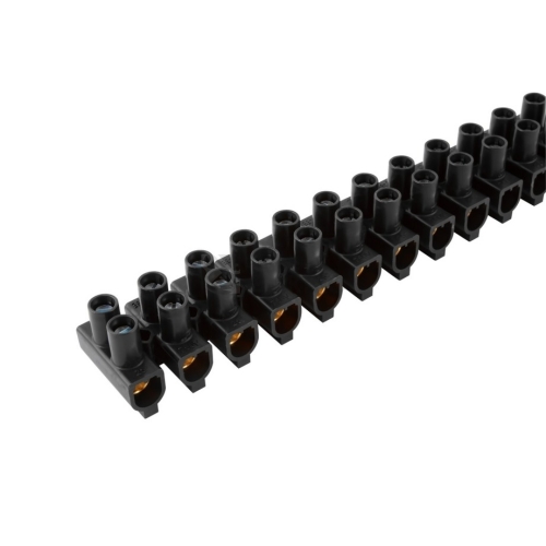 Kompletní specifikace Svork. lámací, 12x 10-25mm2-750V-101A-80°C, černá, mosazné pouzdro, rozměry: 187, 3x28x30mm Made in Austria/EU | EN 60998-1:2004, EN 60998-2-1:2004