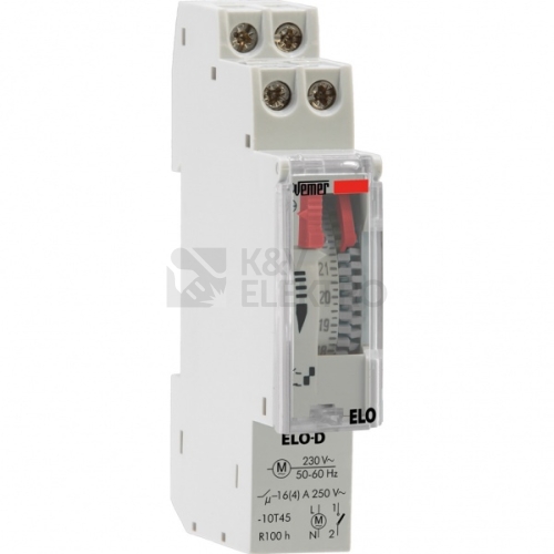 Elektromechanické spínací hodiny s jezdci s denním programováním a zálohou chodu. Krytka na boční straně přístroje umožňuje výměnu vybité záložní baterie. Přístroj je vhodný pro instalace na lištu DIN.