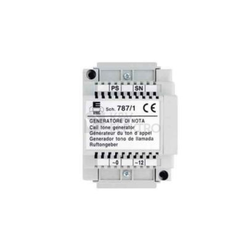 Generátor vyzváněcího tónu do analogových systému 4+n domovního telefonu nebo videotelefonu s koaxem, 4 DIN moduly.Používá se pro rozlišené vyzvánění např. z patra.