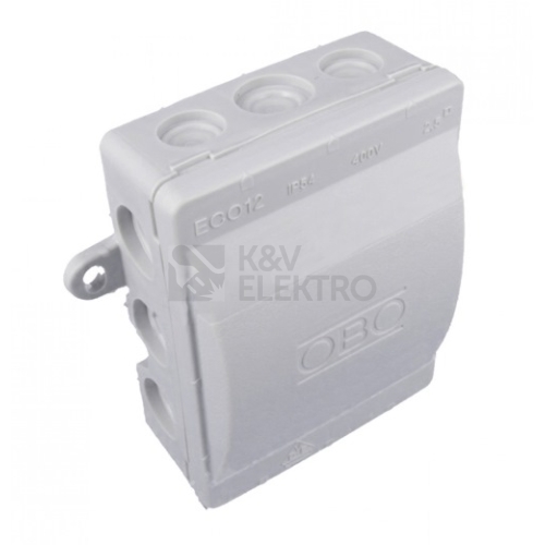 Krabice OBO ECO 12/5 IP54 100x88x42 se svorkovnicí šedá 2001007 Stupeň krytí IP 54, jmenovité napětí 400 V, jmenovitý průřez 1,5 ÷ 2,5 mm², 12 otvorů pro kabel o průměru 8-12 mm Rozměry: 100 x 88 x 42 mm Světlé vnitřní rozměry 89 x 64 x 28 (35) mm Svěrné víko Vývody odříznutelné zevnitř Svorkovnice 5x 2,5 mm² ##VIDEO:https://www.youtube.com/embed/u_ZXzaRKXRw##