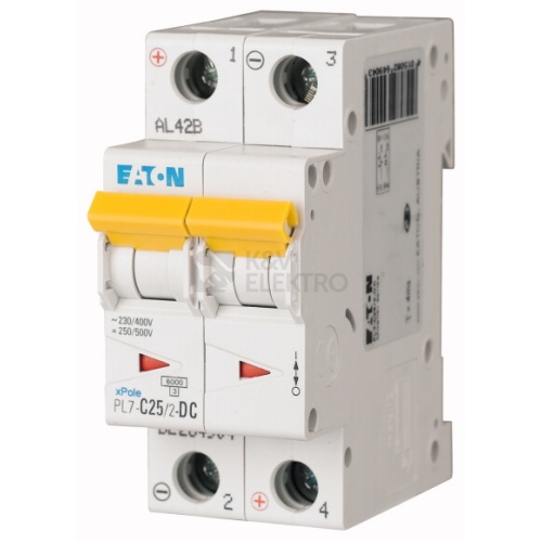 Jističe vedení PL7, 2-pólové, Tripping Characteristic: C, Rated current In: 25 A, Rated switching capacity (IEC/EN 60947-2): 10 kA, Spínací přístroje pro stejnosměrný proud