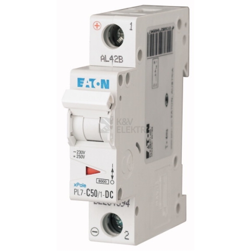 Jističe vedení PL7, 1-pólové, Tripping Characteristic: C, Rated current In: 50 A, Rated switching capacity (IEC/EN 60947-2): 10 kA, Spínací přístroje pro stejnosměrný proud