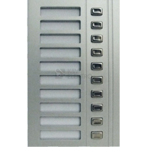 Tlačítkový modul GUARD - 10 tlačítek Zabezpečují vyzvonění domácího telefonu (zvonku) a následnou komunikaci příchozího s obyvatelem/domácím telefonem. Varianta pro výstavbu zvonkového/tlačítkového tabla Moduly jsou vyrobeny ze silnostěnného eloxovaného hliníkového profilu.