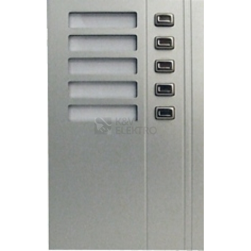 Tlačítkový modul GUARD - 5 tlačítek Zabezpečují vyzvonění domácího telefonu (zvonku) a následnou komunikaci příchozího s obyvatelem/domácím telefonem. Varianta pro výstavbu zvonkového/tlačítkového tabla Moduly jsou vyrobeny ze silnostěnného eloxovaného hliníkového profilu.