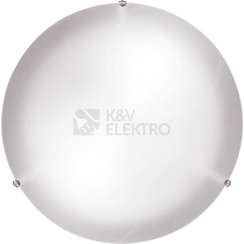 Žárovkové, stropní a nástěnné dekorativní svítidlo určené k osvětlování interiérů. Skládá se z kovové základny, která je povrchově upravena práškovým plastem, plastových držáků s povrchovou úpravou - chrom a krycího, ohýbaného, pískovaného skla. EAN: 8590780712047 Patice: E27 Zdroj: 60W IA Hmotnost: 1.05 Kg Průměr: 300 Napětí: 230V Frekvence: 50Hz Krytí: IP20