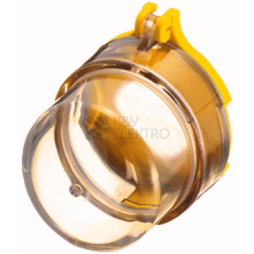 Plombovatelný kryt na hřibové tlačítko Nouzové vypnutí, průhledný s vylamovacím místem, opakovaně použitelný, systém RMQ, stupeň krytí IP65 použitelný pro M22-(S)-PV, M22S-PVL, M22-PVS
