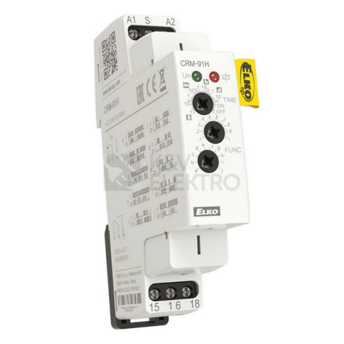 Multifunkční časové relé, 10 funkcí, výstup 1x16A pro univerzální využití v automatizaci, řízení a regulaci nebo v domovních instalacích díky své bohaté výbavě (10 funkcí, 10 časových rozsahů, UNIverzálnímu napájení, 16A nebo 3x8A kontaktu) pokrývá veškeré požadavky, které mohou být na časové relé kladeny 10 funkcí - 5 časových funkcí ovládaných napájecím napětím - 4 časové funkce ovládané ovládacím vstupem - 1 funkce impulsního relé komfortní a přehledné nastavování funkcí a časových rozsahů se provádí otočnými přepínači nastavitelný čas od 0.1 s do 10 dní je rozdělen do 10-ti rozsahů: (0.1 s–1 s / 1 s–10 s / 0.1 min–1 min / 1 min–10 min / 0.1 h–1 h / 1 h–10 h /0.1 dne–1 den / 1 den - 10 dní / pouze ON / pouze OFF) CRM-91H, CRM-93H: - univerzální napájecí napětí AC/DC 12 - 240 V nebo AC 230 V - výstupní kontakt: CRM-91H: 1x přepínací 16 A CRM-93H: 3x přepínací 8 A CRM-9S: - univerzální napájecí napětí AC 12 - 240 V, absolutně bezhlučné spínání - 1x statický bezkontaktní výstup (triak) 0.7 A (60 A/<10 ms), spíná potenciál A1 stav výstupu indikuje multif. červená LED, která bliká nebo svítí v závislosti na stavu výstupu v provedení 1-MODUL, upevnění na DIN lištu Možnost připojení zátěže k ovládacímu vstupu Paralelně mezi svorky S-A2 je možno připojit zátěž (např. stykač, kontrolku či jiný přístroj), aniž by byla narušena správná funkce relé. Zátěž je pod napětím po dobu, pokud je tlačítko sepnuto.