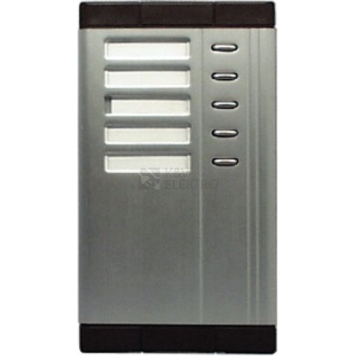 Tlačítkový modul TT94 - 5 tlačítek Zabezpečují vyzvonění domácího telefonu (zvonku) a následnou komunikaci příchozího s obyvatelem/domácím telefonem. Varianta pro výstavbu zvonkového/tlačítkového tabla Moduly jsou vyrobeny ze silnostěnného eloxovaného hliníkového profilu.